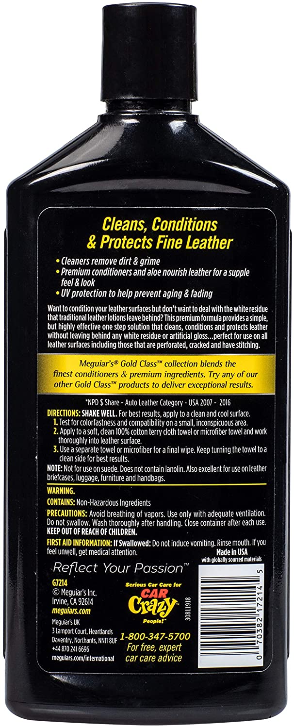 Meguiar's Gold Class Rich Leather Lotion – Cleans, Conditions & Protects for Complete Care – G7214, 14 oz